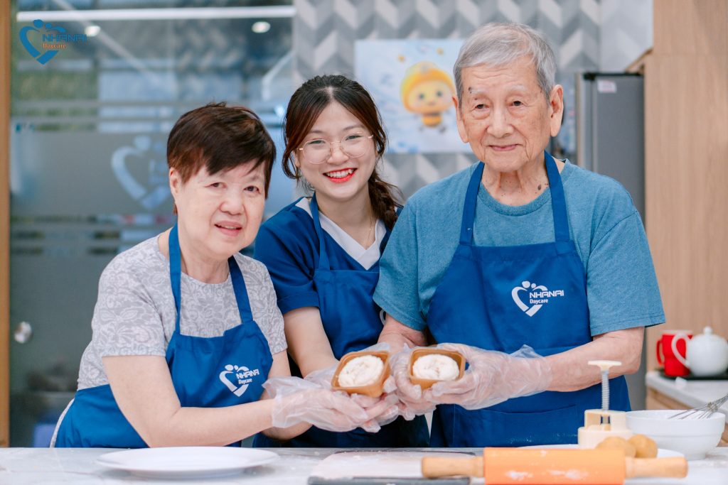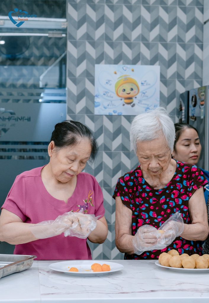 Ánh trăng rằm tháng Tám ghé qua, mang theo không khí đoàn viên và những nụ cười rạng rỡ trong đại gia đình Nhân Ái Daycare. Trung thu năm nay, các ông bà không chỉ được hòa mình trong không gian văn nghệ ấm áp, cùng lắng nghe những khúc hát thân quen, mà còn được tự tay làm nên những chiếc bánh dẻo vào buổi chiều. Hương thơm ngọt ngào của những mẻ bánh lan tỏa khắp căn phòng, gợi lại biết bao ký ức tuổi thơ dưới ánh trăng tròn.
