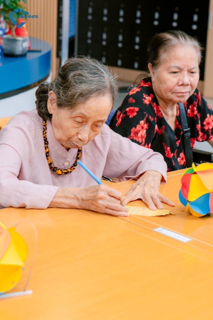 Trong không gian ấm cúng tại Trung tâm Nhân Ái Daycare, những bàn tay run run chậm rãi nắn nót viết nên lời chúc gửi tới con cháu. Từng dòng chữ là niềm thương, nỗi nhớ và lời nhắn nhủ chân thành mà các ông bà muốn gửi đi. Mỗi chiếc bánh, mỗi câu hát, mỗi lời chúc đều chứa đựng một tình yêu thương trọn vẹn, để Trung thu không chỉ là Tết của thiếu nhi mà còn là ngày hội của tình thân và ký ức.
